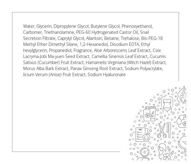 Die Tuchmaske aus reiner Baumwolle enthält frische und natürliche Inhaltsstoffe. Filtrat aus der Schnecke wirkt verschönernd, feuchtigkeitsspendend, verjüngend, verhindert die Hautalterung und beschleunigt die Regeneration der Haut. Die Tuchmaske funktioniert auch gut bei Akne-Haut. Aloe-Extrakt hält Feuchtigkeit, hat entzündungshemmende und beruhigende Eigenschaften und solche, die vor UV-Strahlen schützen. Die Maske stimuliert die Regeneration von Epidermis und hat aufhellende Eigenschaften. Bei regelmäßiger Anwendung bekommt die Haut eine einheitliche Farbe, wird strahlender und die Poren werden weniger sichtbar.