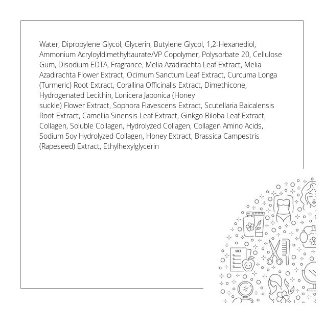 Die Gelmaske in Form eines Baumwolltuchs ist eine Quelle wertvoller Wirkstoffe und wirkt beruhigend und regenerierend. Es enthält aus indischem Honig gewonnene Komponenten, die eine biologische Aktivität haben, die die Wundheilung unterstützt. Diese haben eine schützende, feuchtigkeitsspendende und Anti-Flocken-Wirkung und stellen die natürliche Hydro-Lipid-Barriere der Epidermis wieder her. Zusätzlich reduziert indischer Honig feine Fältchen, stellt die Farbe wieder her und beugt so Zeichen der Hautalterung vor. Durch den Kurkuma-Extrakt besitzt die Maske entzündungshemmende, antibakterielle und antioxidative Eigenschaften.